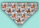 We print the bandanas in house. The design is adjusted for each size so it looks good no matter how big or how small the bandana.